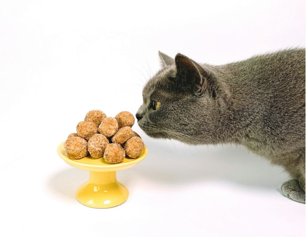 만드는 방법: 연어 필레를 익혀줍니다. 물에 살짝 데치거나 찜기에 찌는 방법이 좋습니다. 양념은 하지 않는 것이 중요합니다. 참치 캔의 물을 빼고, 내용물을 그릇에 담습니다. 익힌 연어를 잘게 부숴 참치와 섞어줍니다. 계란을 풀어 준비한 참치와 연어 혼합물에 섞습니다. 이 혼합물을 작은 공 모양으로 만들어줍니다. 이때 고양이가 한입에 먹을 수 있는 크기로 만들어주세요. 180도의 오븐에서 10~15분간 구워줍니다. 간식이 완전히 식으면 고양이에게 제공하면 됩니다.