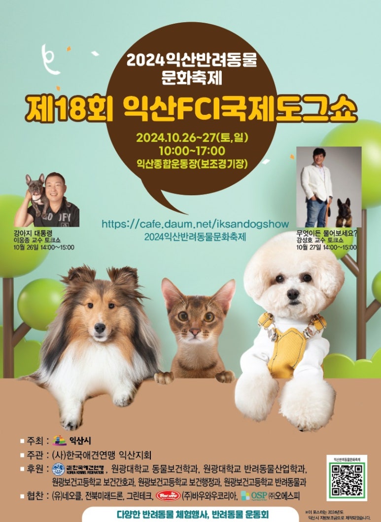 '2024 익산 반려동물 문화축제' 및 '제 18회 익산 FCI 국제 도그쇼'를 개최 합니다.